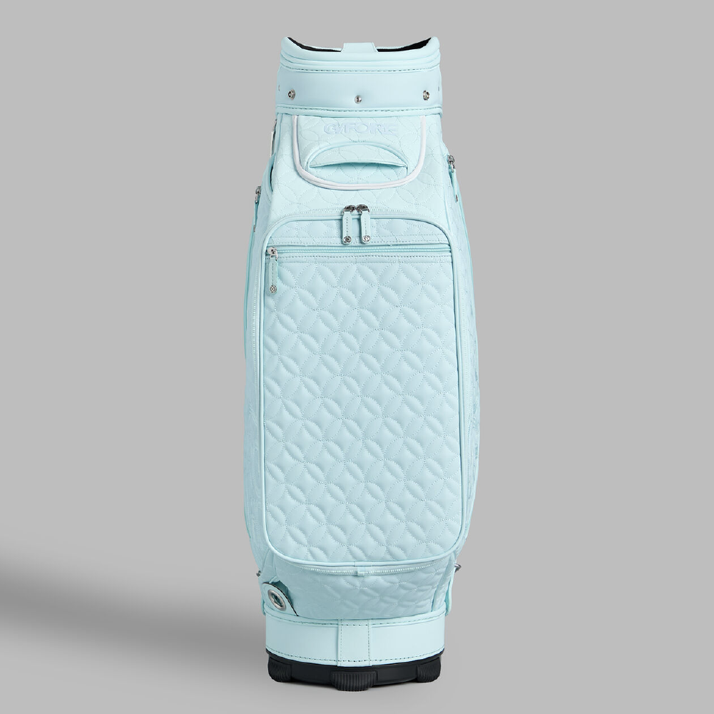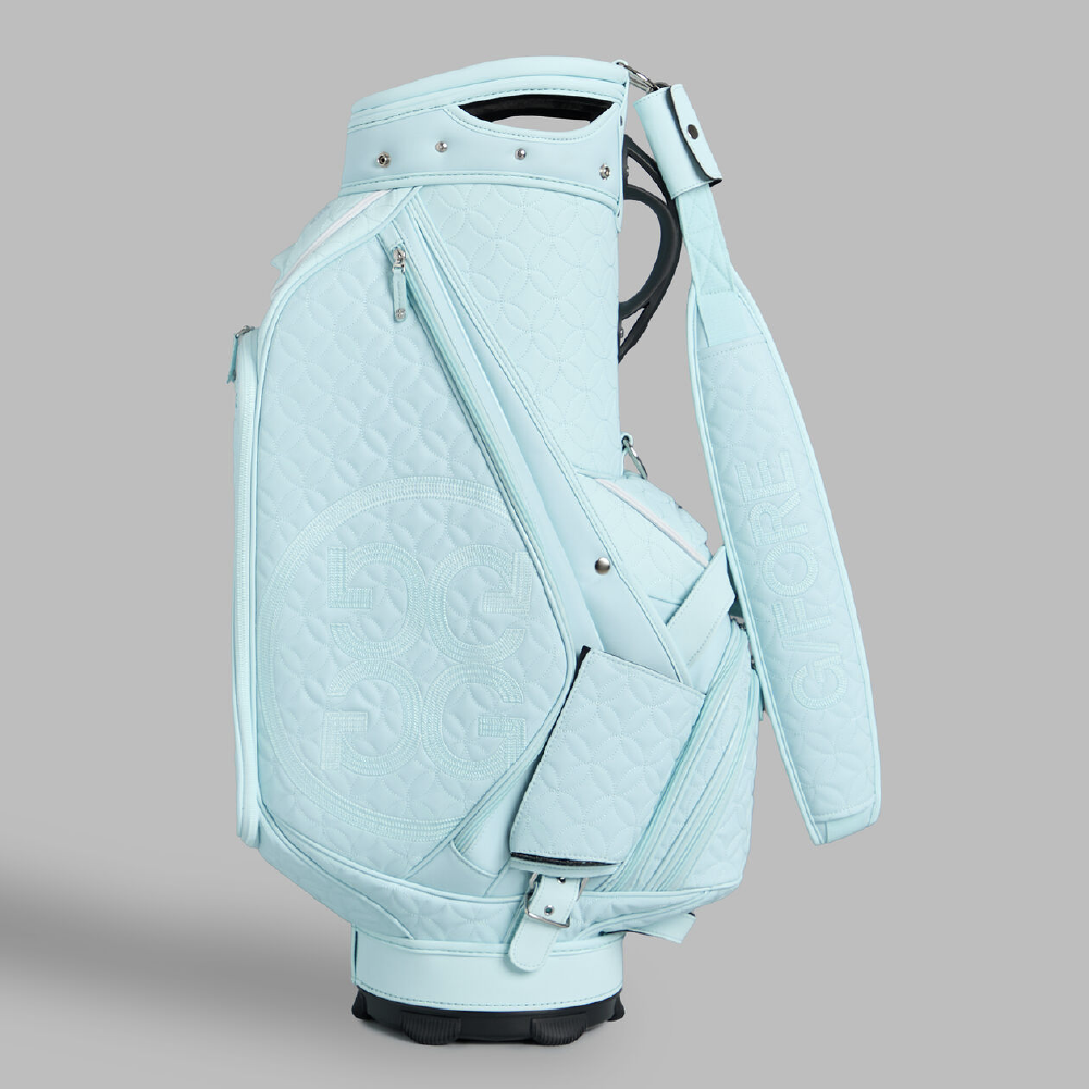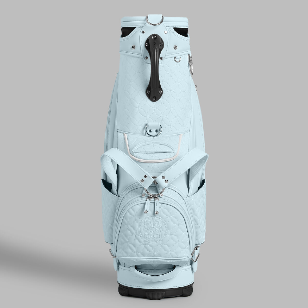 Say it with your golf bag. Made with high abrasion-resistant tour-grade PU, our new golf bag is quilted throughout in a unique mosaic pattern, weighing approximately 12 lbs. Equipped with dual top handles, velour-lined compartments, a single staff strap, and a matching rainhood, it makes every round easy and enjoyable. The ultimate accessory also boasts bottle sleeves and multiple pocket storage, including quick-access magnetic closures.