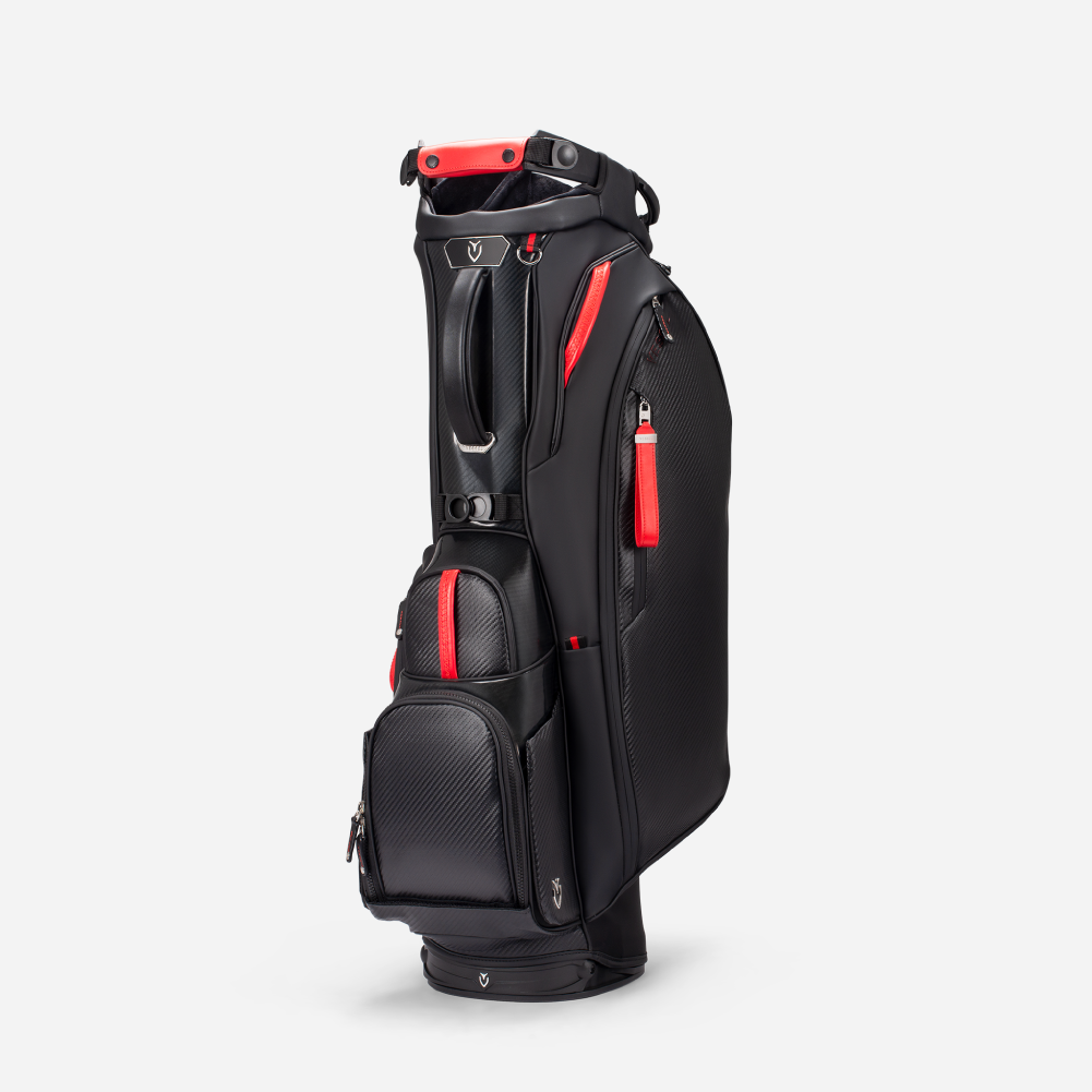 Experience the pinnacle of luxury performance with the Player V Pro. Meticulously crafted for the highest level of functionality and on-course convenience. The newly designed 7-and-14 way tops offer best in class club organization with dedicated putter storage and offset club dividers for optimal club viewing and retrieval. The Player V Pro utilizes VESSEL’s patented technologies (Equilibrium Double Strap and Rotator Base) for maximum balance and superior stability. Intentionally placed high strap-attachment points promote further balance and eliminate club fallout while the bag is being carried. A key feature is the cart strap pass-through for added protection when used on a cart or trolley. With too many fine details to name, you’ll be pleasantly surprised to discover that every detail, every element, of the Player V Pro is thoughtfully crafted for an uncompromised game.