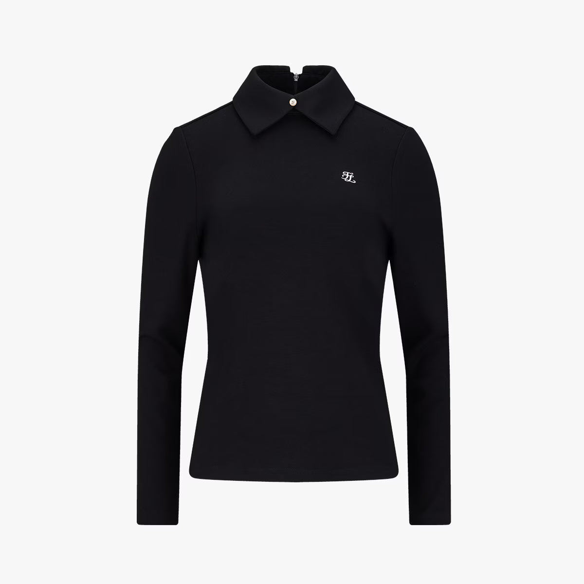 A refined FW slim-fit T-shirt that blends elegance and comfort with pearl details on the collar and functional stretch fabric for both style and practicality.