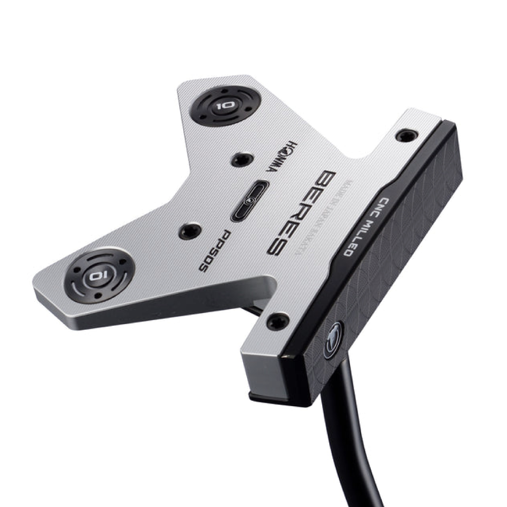 A distinctive hammerhead design that evolves the head shape from T-shaped to K-shaped, achieving the highest MOI in the series. The BERES PUTTER, continuously evolved by TAKUMI craftsmanship of SAKATA, features a body made from CNC-machined SUS303 (soft stainless steel). The aluminum sole (excluding PP501) is enhanced with stainless weights placed at the toe and heel. With optimal CG design, the rolling of the ball is significantly improved, transforming it into a top-tier putter with excellent feel and sound.