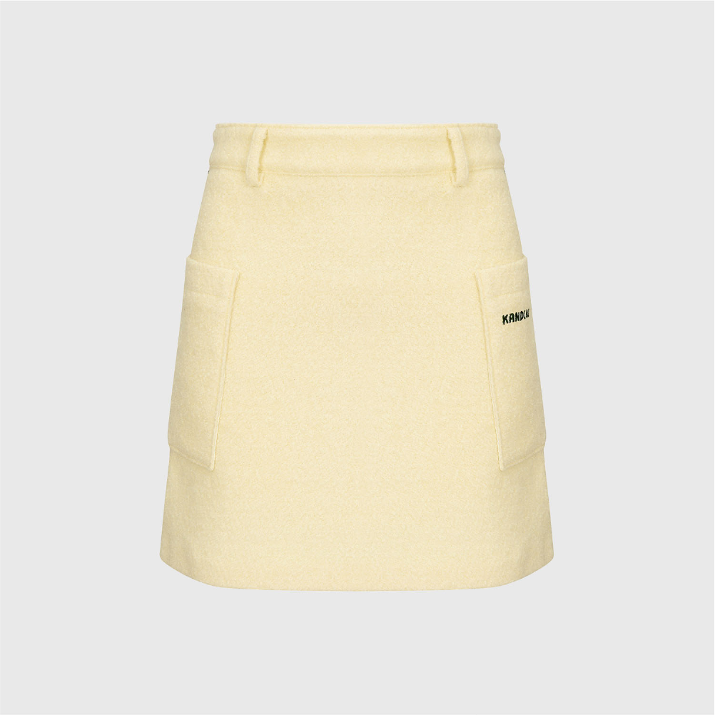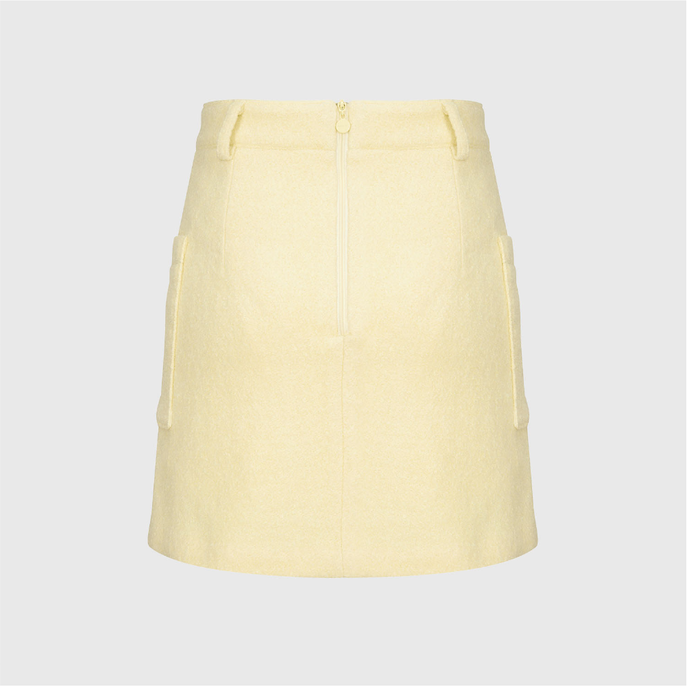 A vibrant cream yellow skirt crafted from warm wool fabric.