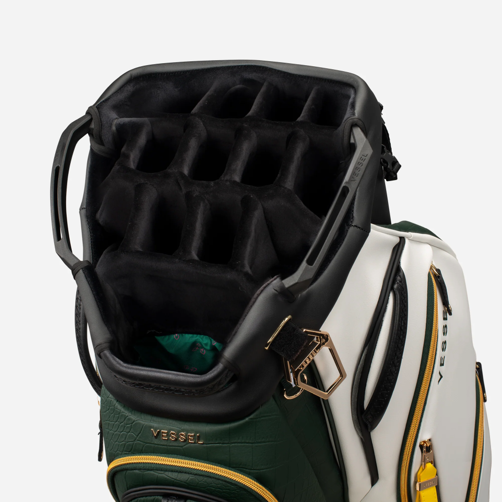 Celebrate the start of the golf season with the 2026 Season Opener Lux Pro Cart II Bag. Designed to celebrate a time of year unlike any other, this limited edition golf bag boasts elegant hits of gold and a luxe, croc pattern in the season’s signature green.