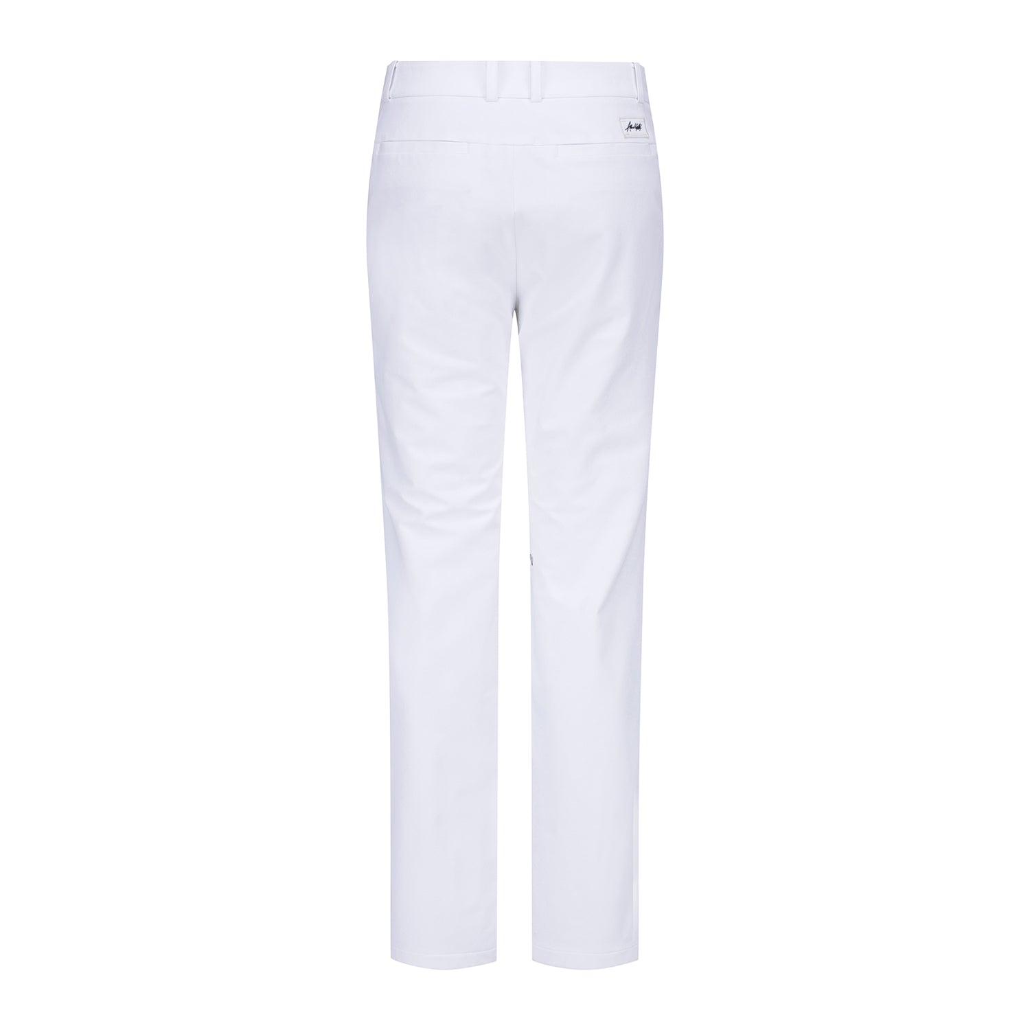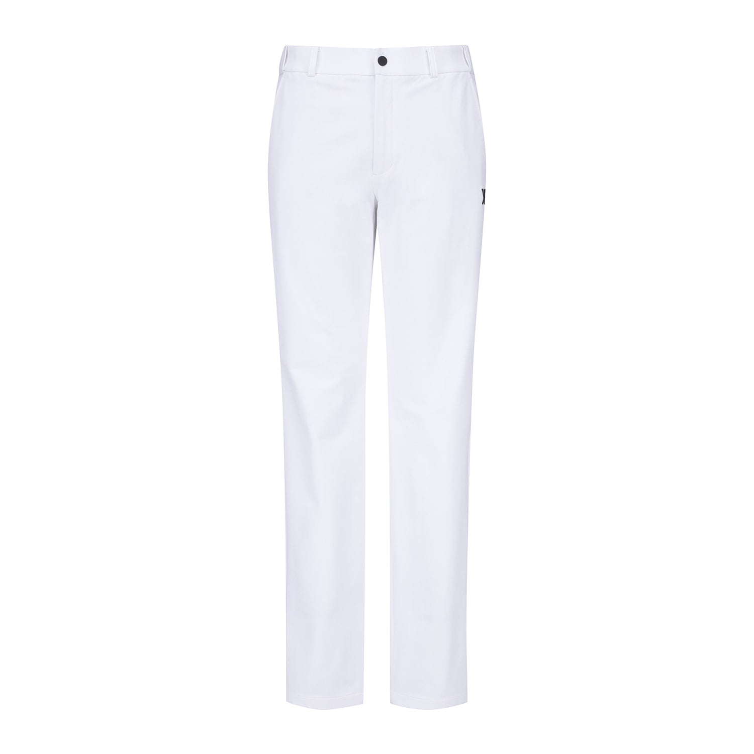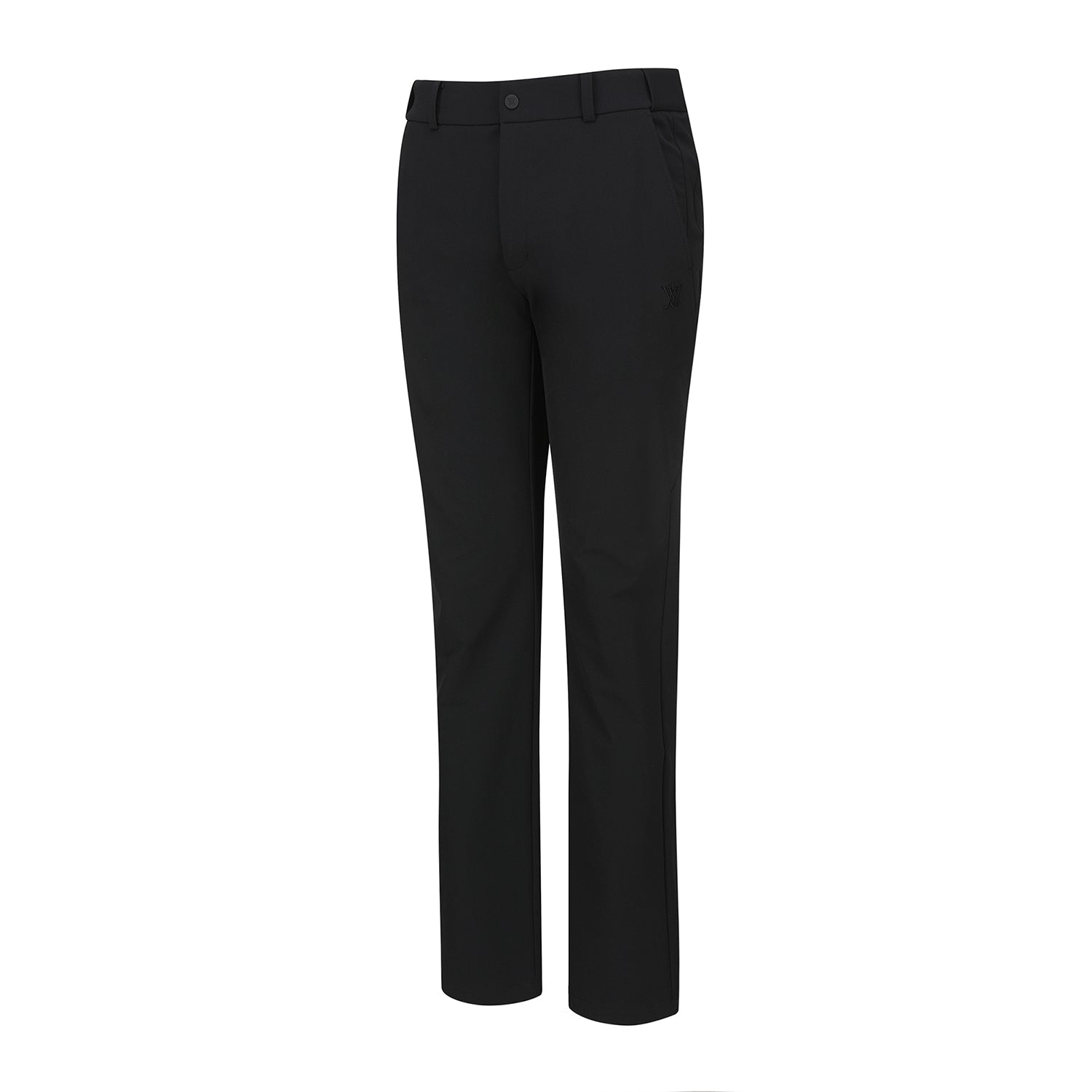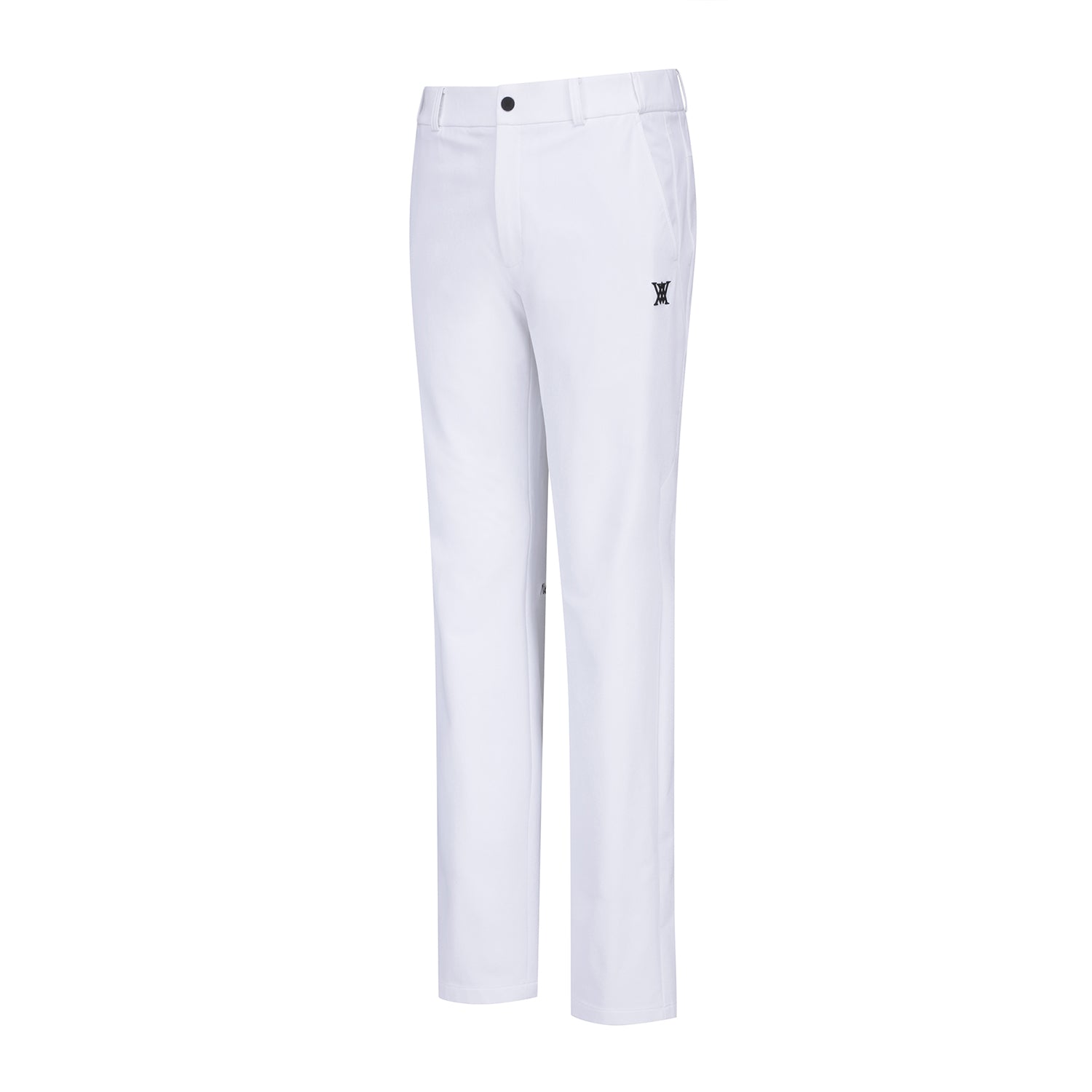 BASIC STANDARD-FIT PANTS THAT PROVIDE A COMFORTABLE FIT USING 4WAY STRETCH FABRIC NO SEE. IT IS A DESIGN WHERE THE LOGO DETAIL AT THE BOTTOM OF THE BACK PLATE BECOMES A POINT AND THE WAIST. HIDDEN BANDING ON THE SIDE ENSURES A COMFORTABLE FIT FOR VARIOUS WAIST SIZES.