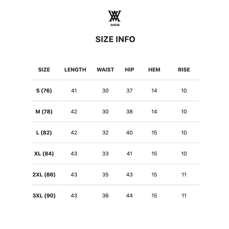 | SIZE | TOTAL LENGTH | WAIST | HIP | HEM | RISE |
