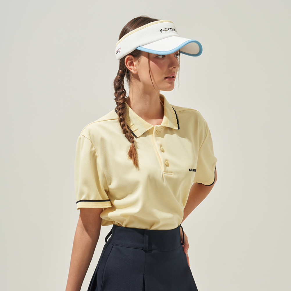 This polo t-shirt features a unique pleated collar design that adds a distinctive and stylish touch. Contrast color detailing and logo play enhance the signature kandini mood, creating a standout look. Made with moisture-wicking and UV protection functional fabric, it keeps you cool, dry, and comfortable throughout the day.