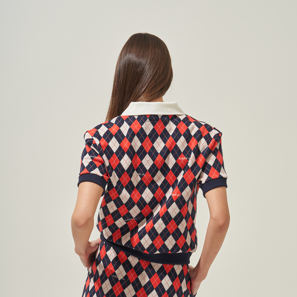 Crafted from vibrant jacquard fabric that stands out with its refined texture, this collared tee offers a clean, classic look with flexible stretch for all day comfort. Designed with excellent breathability, it ensures a comfortable wear throughout various activities. The argyle pattern adds a stylish touch, while the signature kandini embroidery detail enhances the overall look with a more elevated and sophisticated finish.