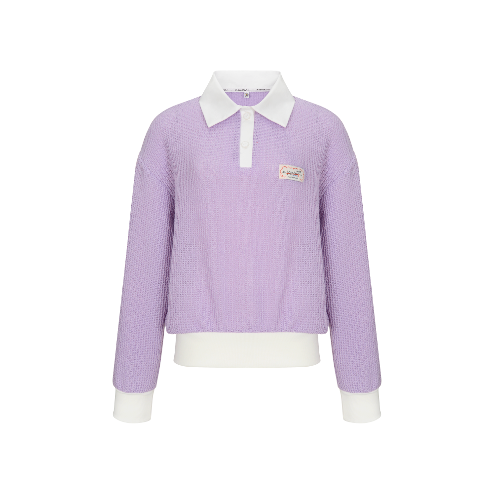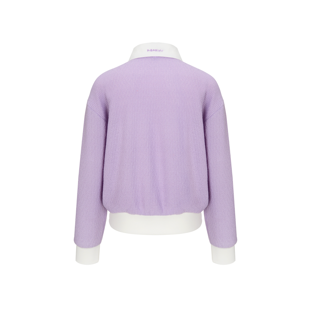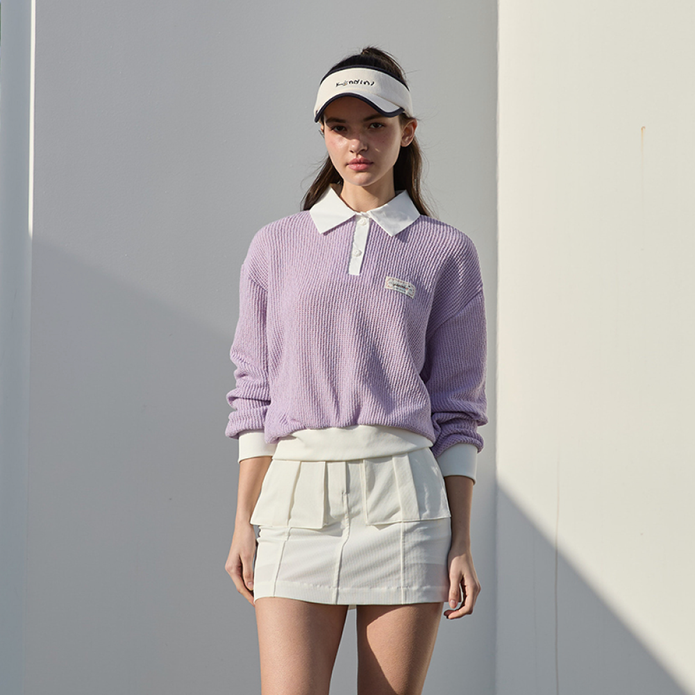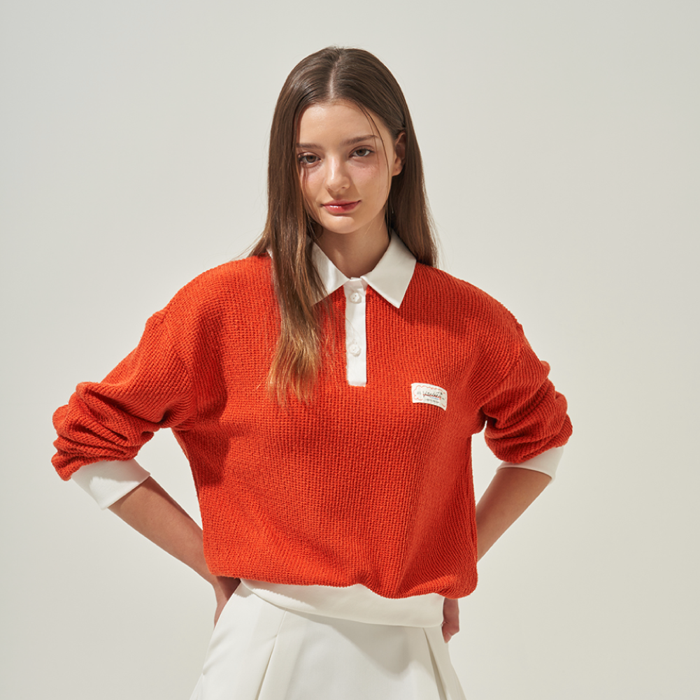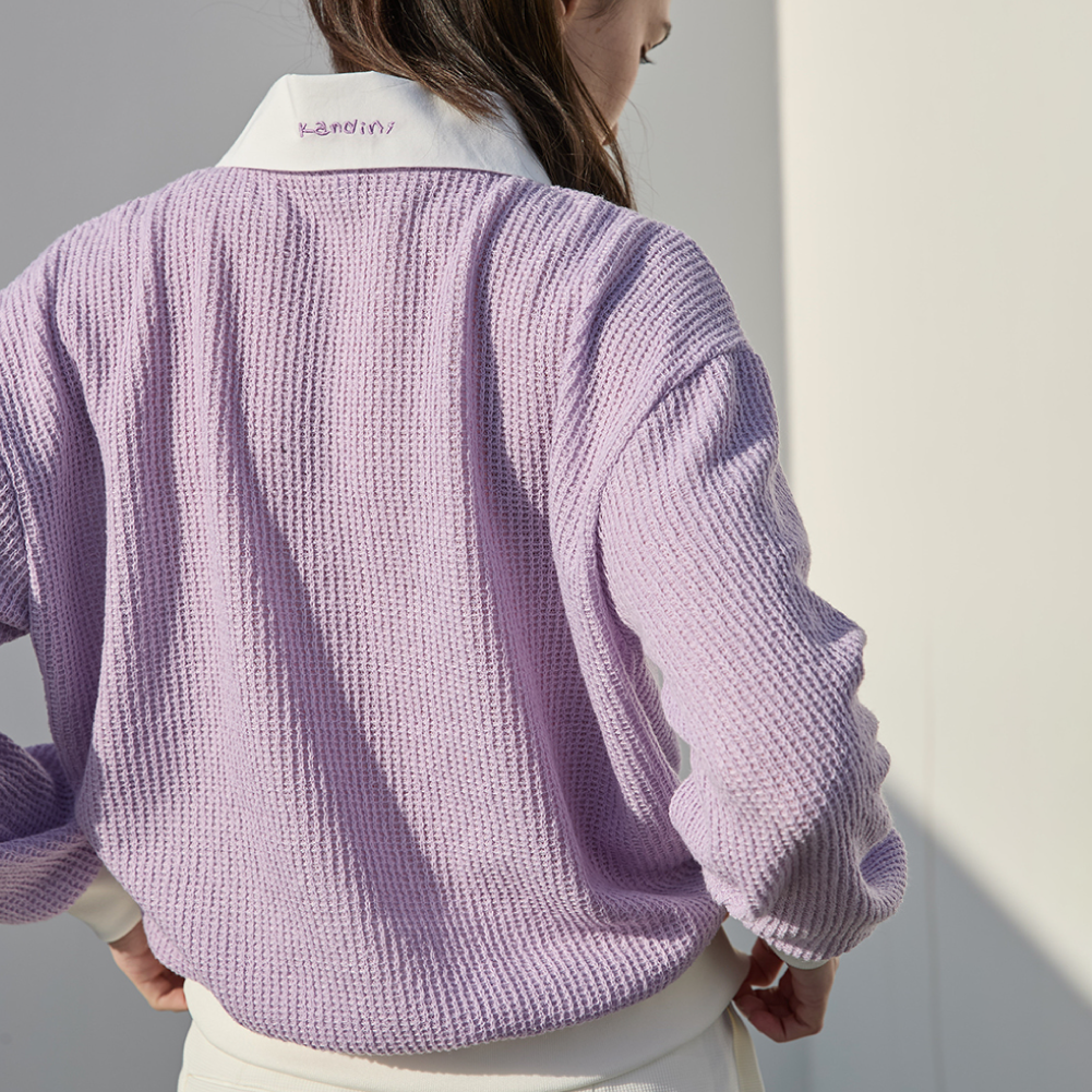 This semi-oversized collared knit features a relaxed and effortless silhouette. Crafted from a lightweight knit with a textured finish, it is ideal for spring and fall wear. Contrast white detailing at the collar, sleeves, and hem adds a bright and sporty touch. Designed with drop shoulders and a loose fit, it offers a comfortable and laid-back feel. With excellent stretch, it ensures ease of movement and all-day comfort.