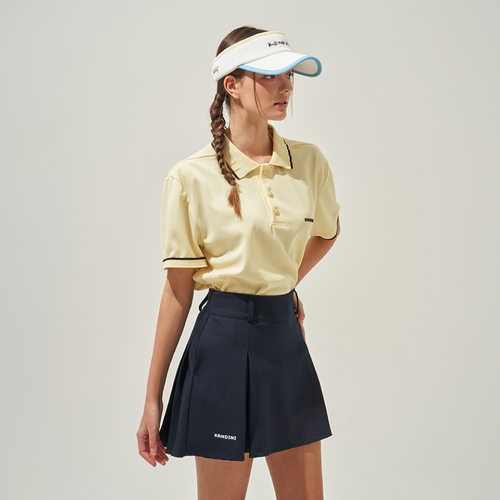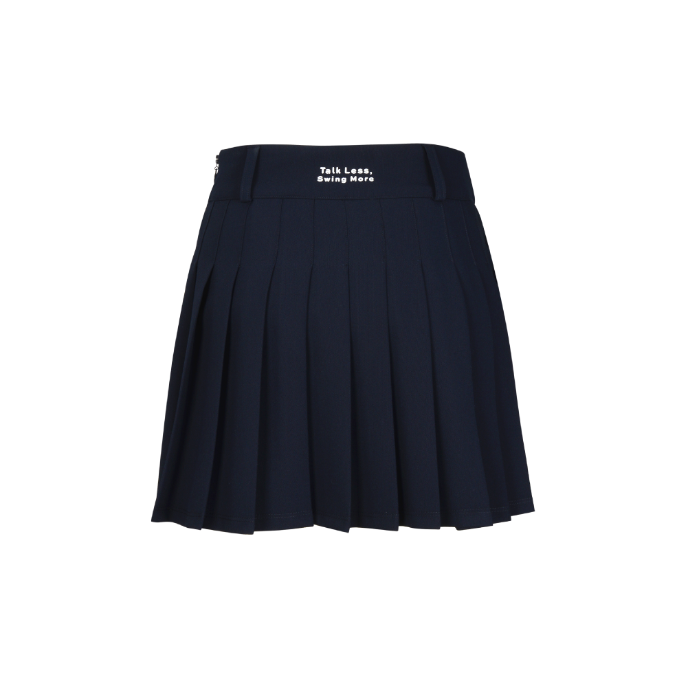 This unique skirt features an asymmetrical pleated design with a different front and back for a distinctive look. The pleated detail at the back enhances the waistline while adding volume to the hip area, creating a flattering silhouette. Designed to move gracefully on the course, it offers a light and dynamic feel with every step. Built-in inner shorts made with cooling fabric provide added comfort and make it ideal for active wear. Crafted with stretch fabric, it ensures flexibility and ease of movement throughout your swing.