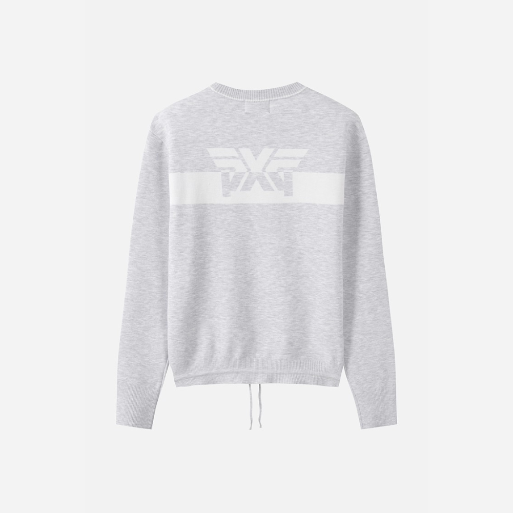 A modern long-sleeve pullover featuring contrast line detailing and a logo intarsia at the back, creating a distinctive and contemporary look. Designed in a semi-loose silhouette, ideal for those who prefer a relaxed and comfortable fit. An adjustable drawstring at the hem allows for flexible styling, adding shape and a refined finish to the overall look.