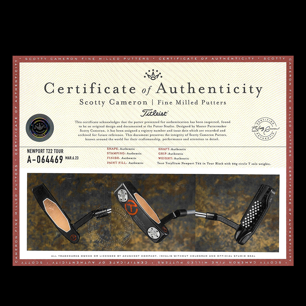 Scotty Cameron Circle T Tour Only T22 Teryllium Newport