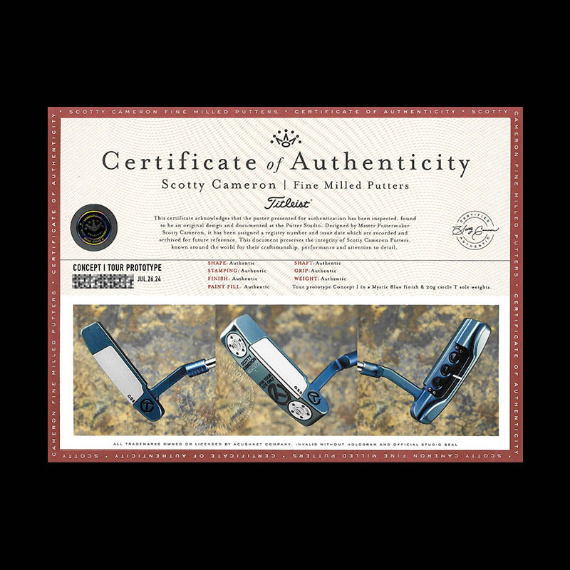 Scotty Cameron Tour Prototype Concept 1 Mystic Blue GSS Insert